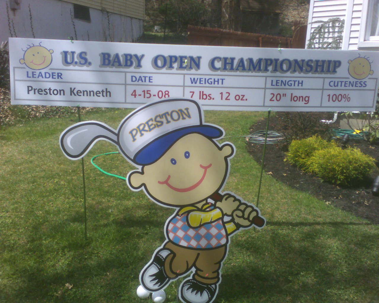 Below you will find a sampling of what we can do. From fun signs for golf outings, birthdays and fundraisers to professional identification, easy to read truck and vehicle lettering, precision cut logos and letters, gold leafing & restoration services, floor graphics and beautifully routed and carved signs (many featuring genuine 23kt gold leaf).